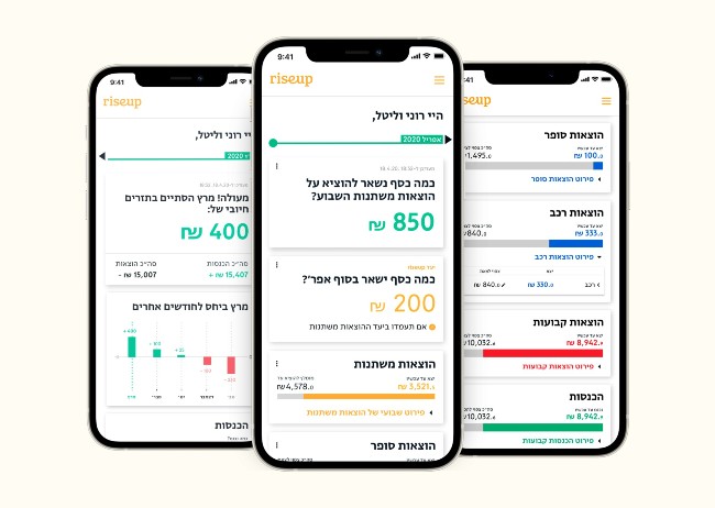 בנוסף, ישנו שירות ניהול תקציב בשם riseup, המציע שירות ייעוץ פיננסי באמצעות צ'אט בוואטסאפ. על בסיס המידע שמסרתם, שירות רייזאפ צופה את ניהול הכספים החודשי ועוזר לכם לקבל החלטות שישתלמו לכם בטווח הארוך.